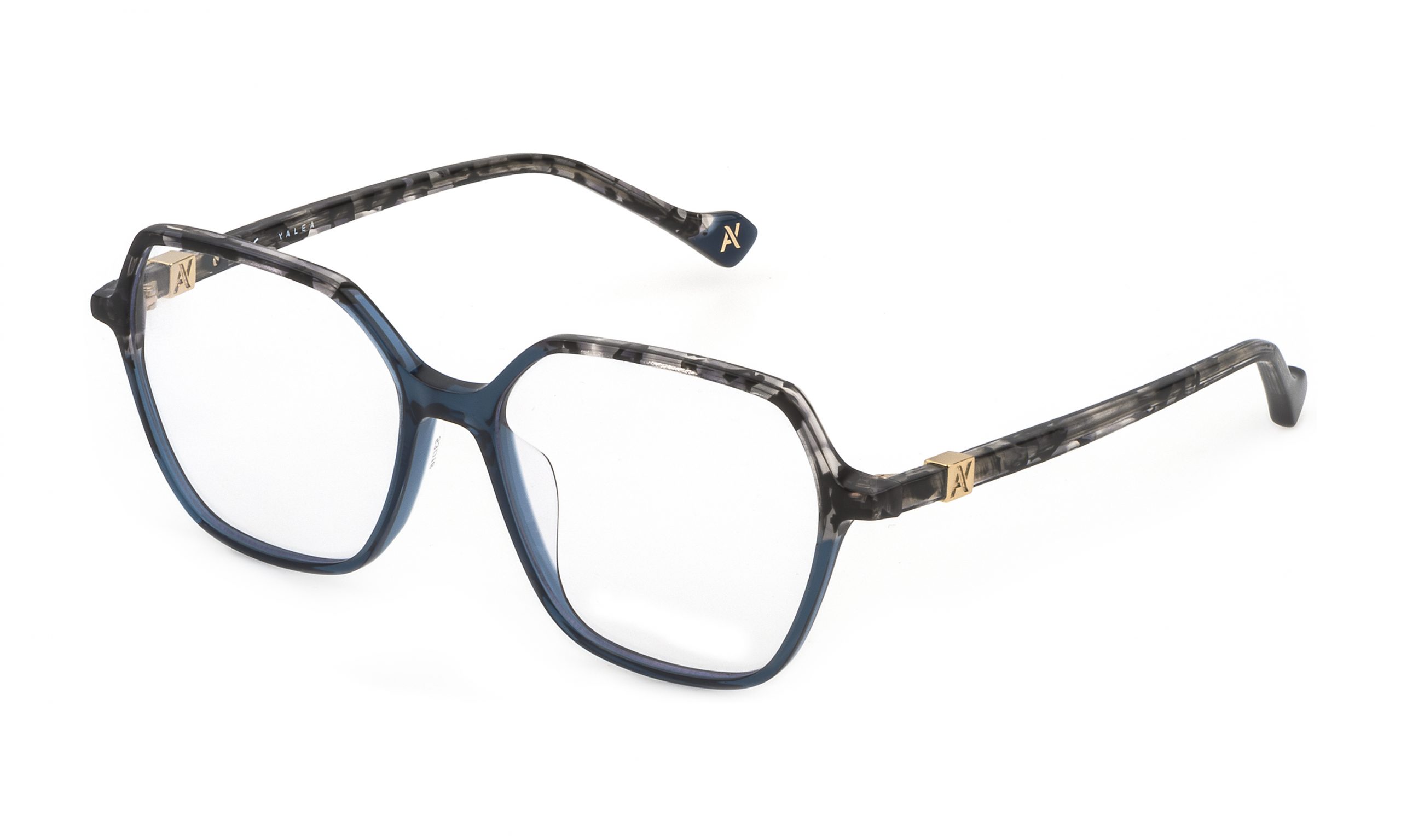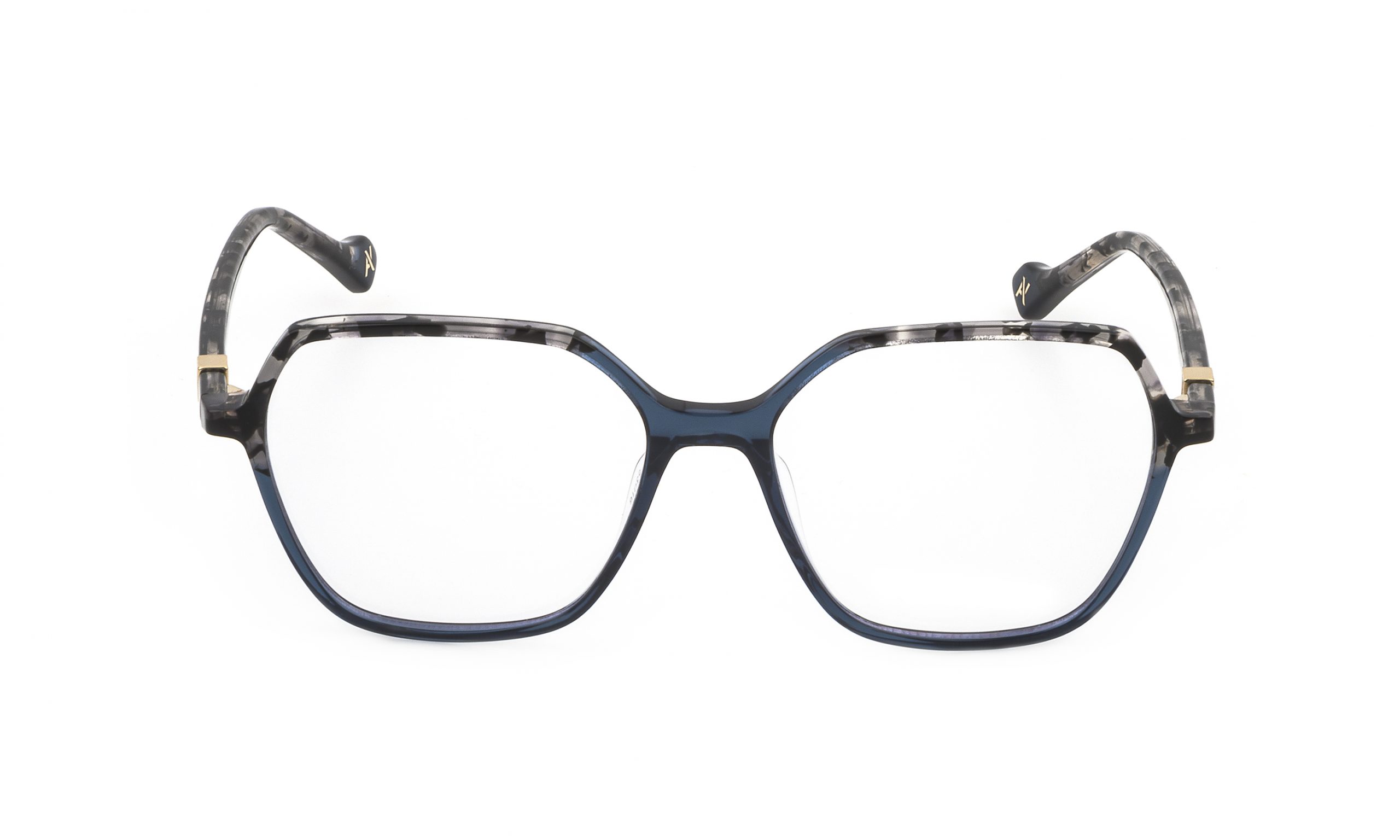 Sanna es un modelo de vista con frente hexagonal y varillas de acetato. Los pequeños cubos metálicos insertados en la varilla abrazan el monograma. En esta variante de color, el detalle que marca la diferencia es el uso de acetato encolado en el frente.