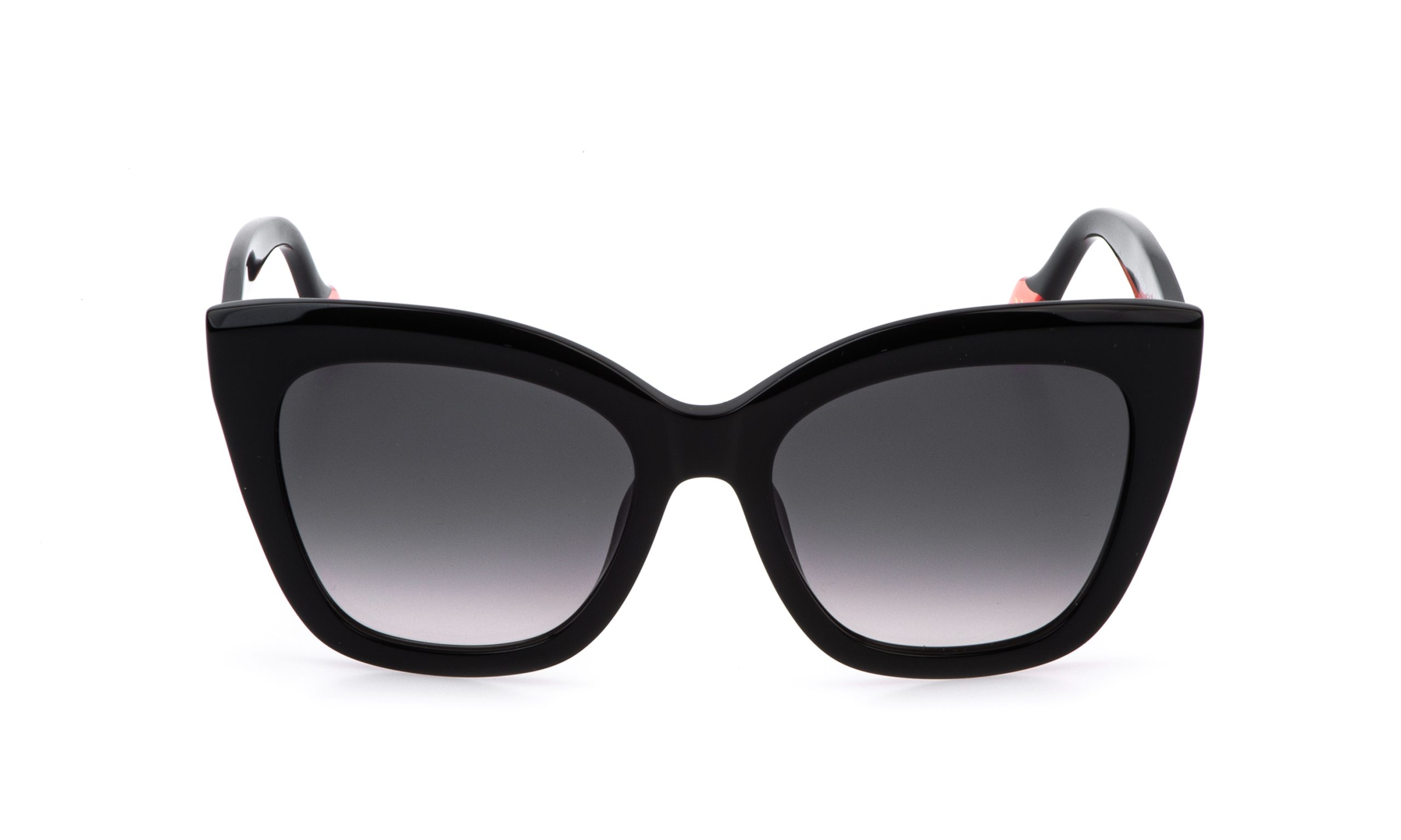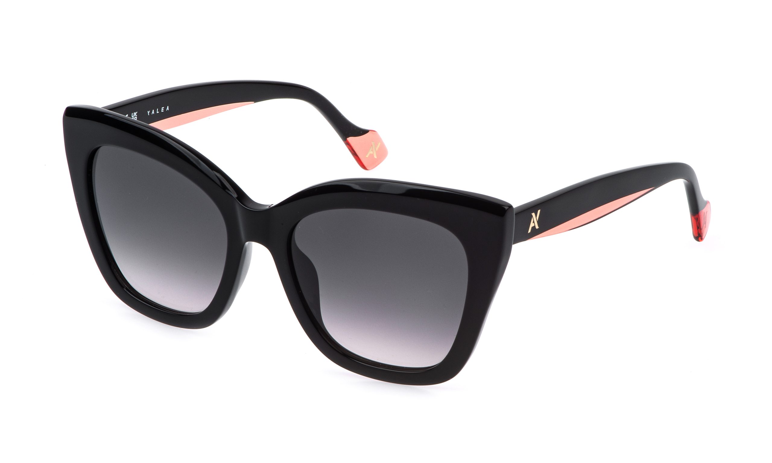 Bessi est un modèle de lunettes de soleil oversize à face carrée. Toute la monture est en acétate et présente deux caractéristiques distinctives : des facettes légères sur la face et des branches bombées avec des incrustations en acétate coloré.
