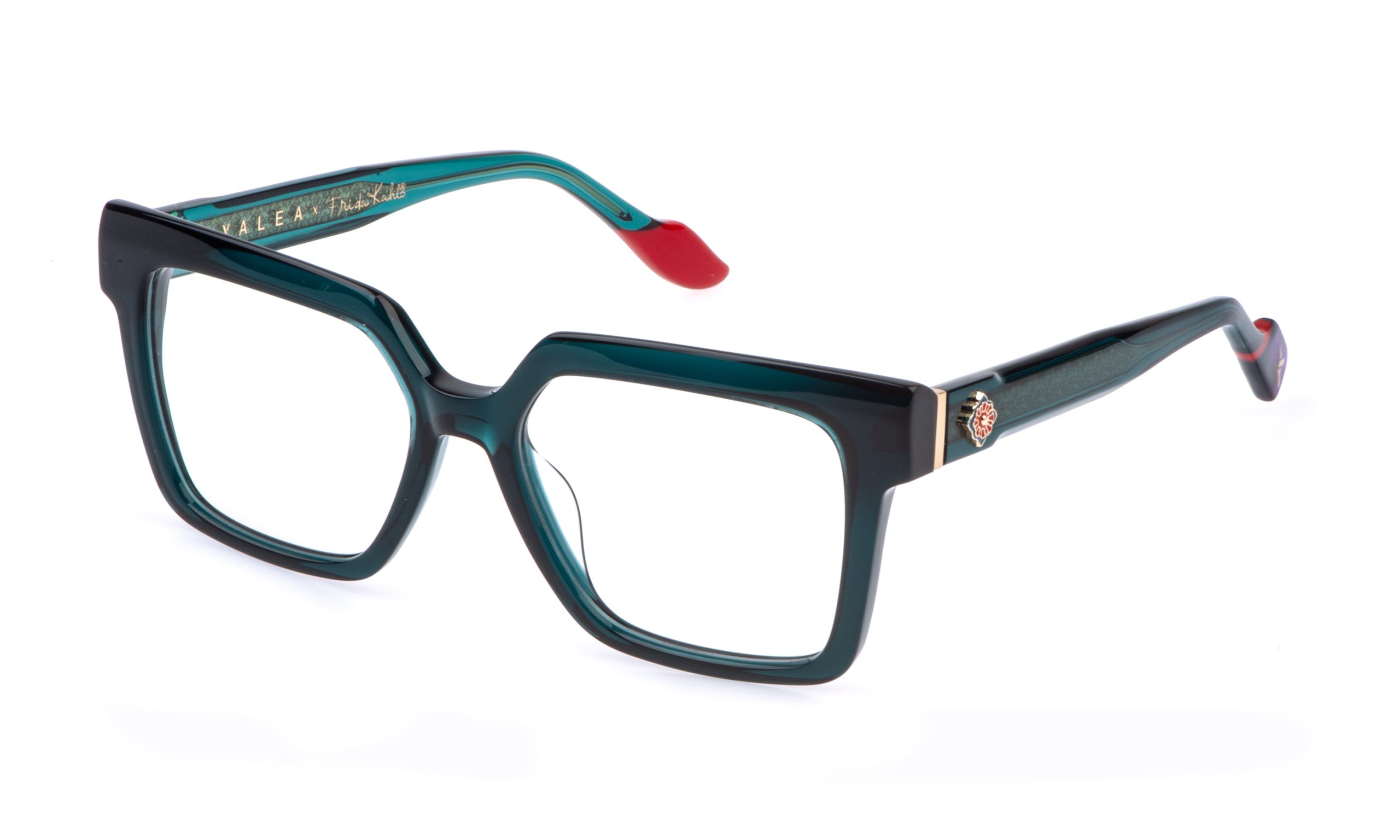 Les lunettes de vue Brave de la collection Yalea x Frida Kahlo symbolisent la force et l’empowerment de l’artiste. Les lunettes sont entièrement fabriquées en acétate et présentent certains des éléments emblématiques qui distinguent cette capsule : la branche épaisse ornée du motif floral iconique et l’extrémité droite finie comme un pinceau. À l’intérieur de la branche gauche se trouve le nom du modèle. La variante 893 reproduit le célèbre monosourcil sur la partie supérieure de la face carrée.