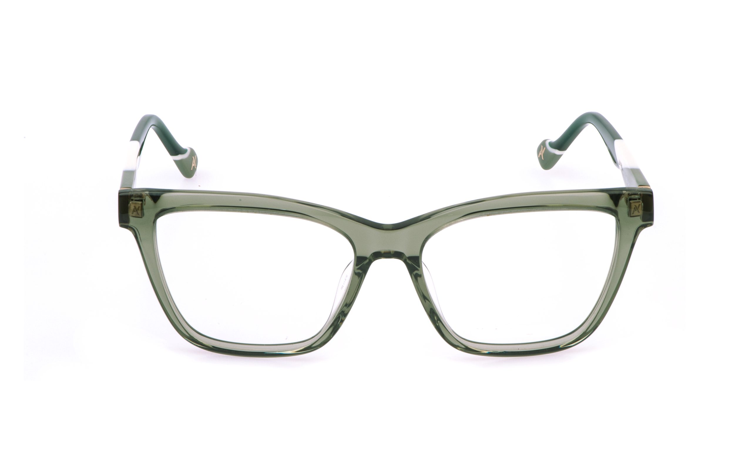 Les lunettes Gladys ont une face carrée en acétate, ornée d’une légère facette sur la partie supérieure. Les branches des variantes 700Y et 804 sont enrichies de trois incrustations colorées rappelant les douces vagues du monogramme Yalea.
