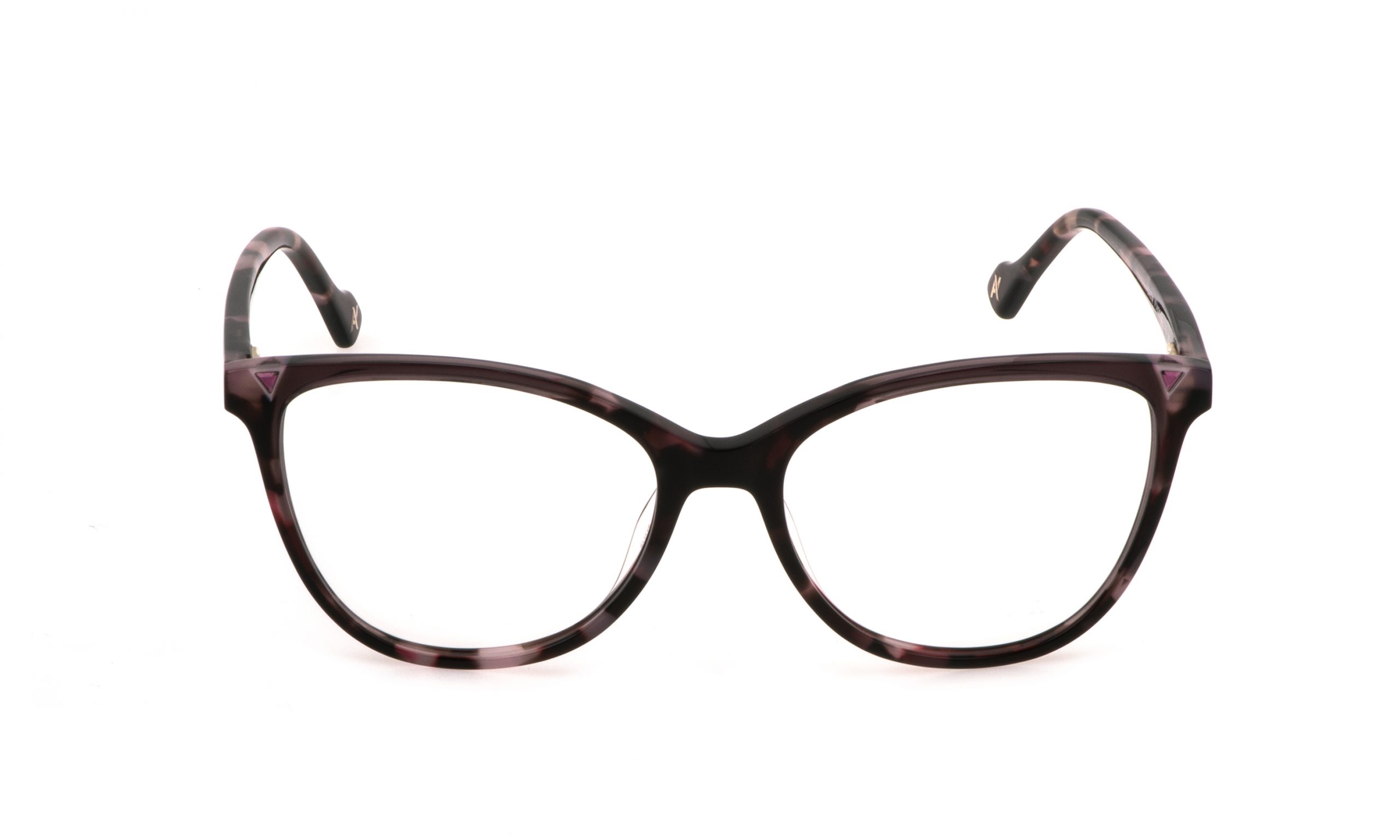 Les lunettes de vue Greta possèdent une face œil-de-chat et sont entièrement fabriquées en acétate. La face est ornée d’un collage en acétate, tandis que les branches présentent le monogramme de la marque et sont dotées d’une charnière flexible. Les versions S comportent de petits cristaux triangulaires appliqués sur la face de la monture.