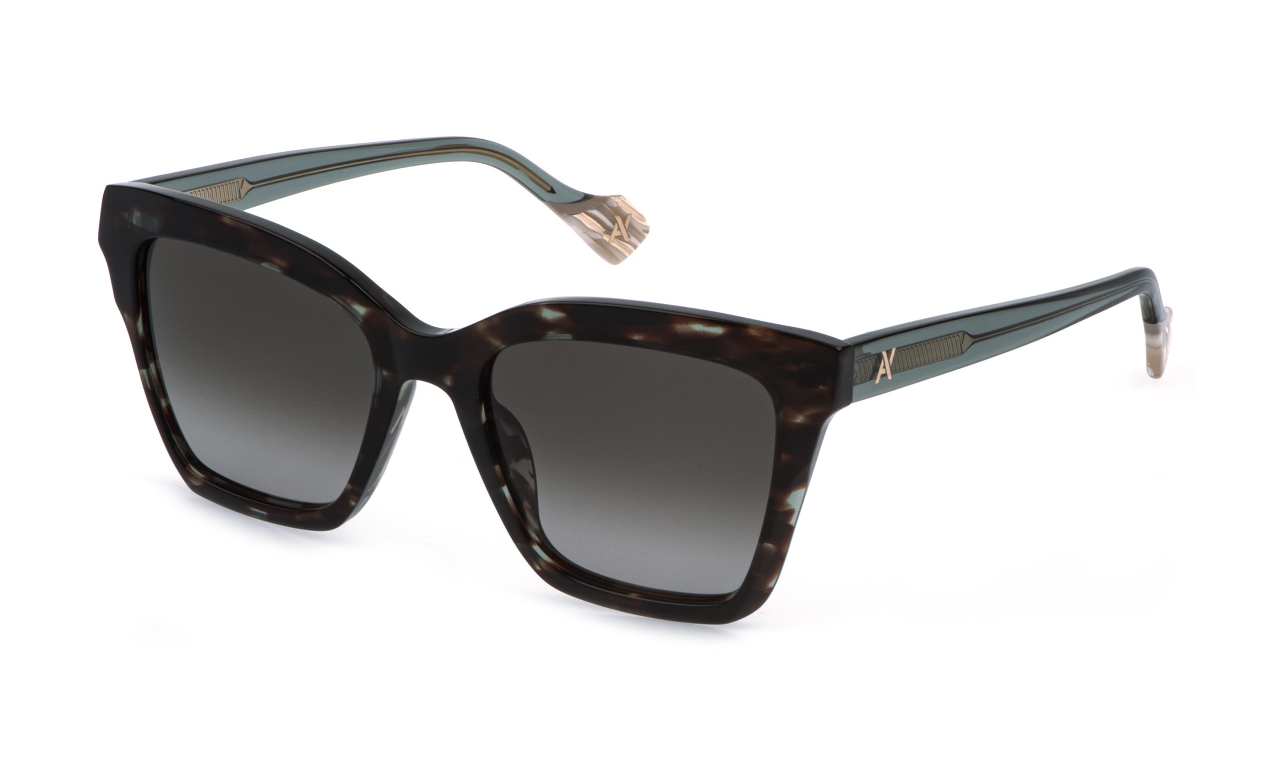 L’occhiale da sole Bettisia presenta un frontale in acetato valorizzato da raffinate sfaccettature che catturano e riflettono la luce con estrema eleganza. Per chi ama i dettagli esclusivi, è disponibile anche la versione «V», impreziosita da delicati incollaggi sulla parte frontale della montatura. Le aste si distinguono per il monogramma AY, un sigillo di stile che aggiunge una nota distintiva e sofisticata.