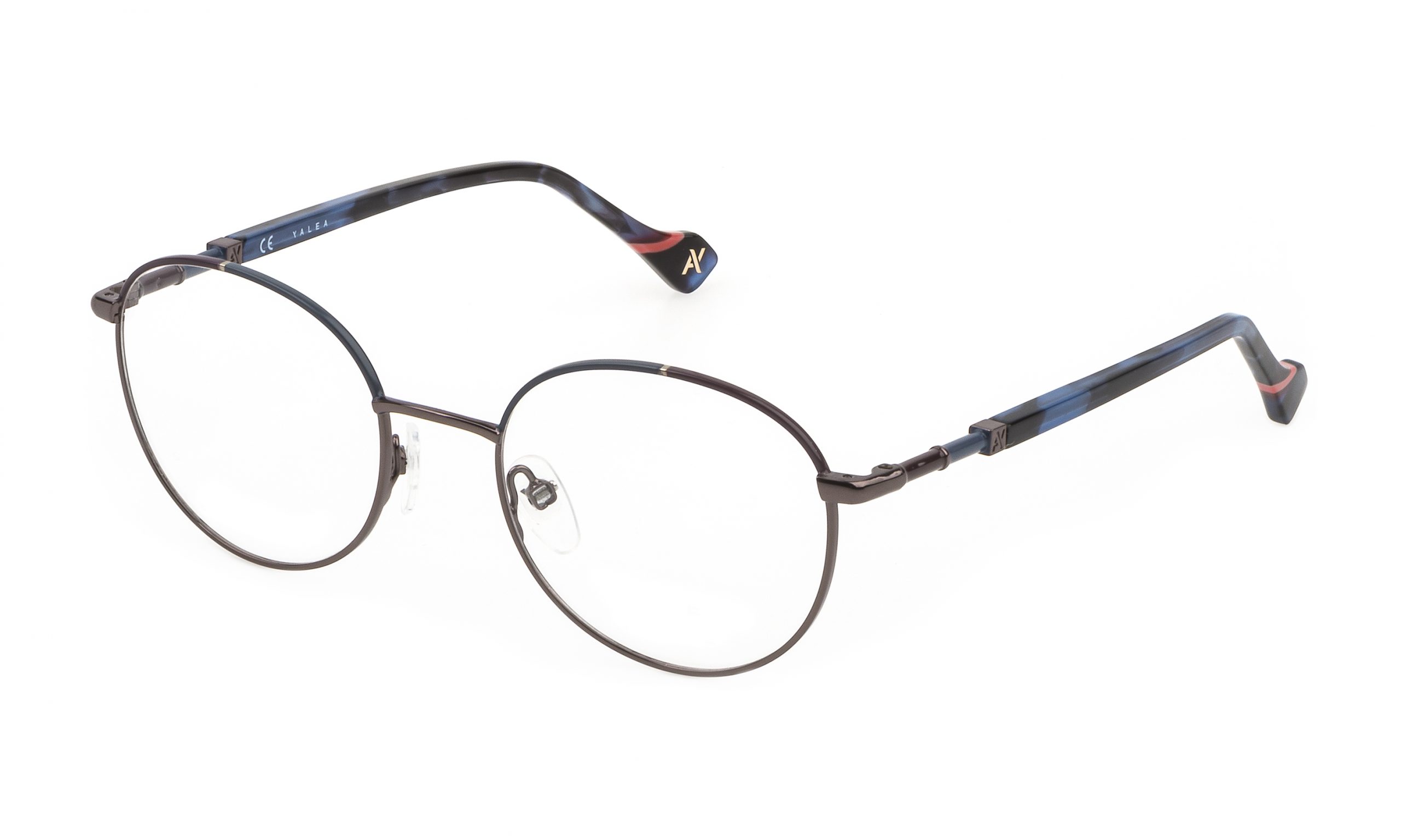 L’occhiale da vista Maggie è caratterizzato da un frontale rotondo in metallo impreziosito da dettagli smaltati colorati. L’asta, combinata con metallo, è abbellita dalla presenza di una sezione tonda e dallo smalto bicolore. Il monogramma è inciso su un piccolo cubo di metallo inserito nell’asta.