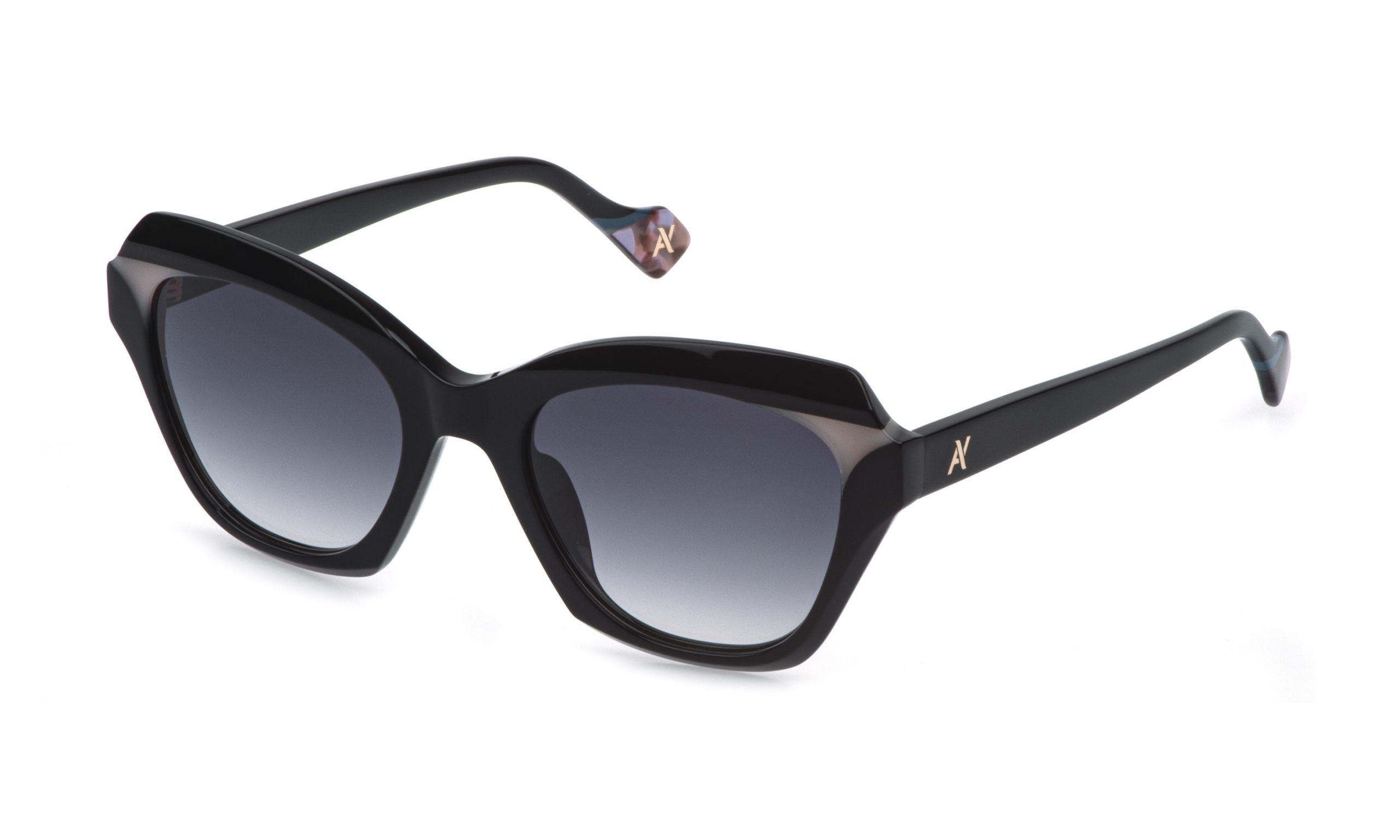 Barbara is a pair of sunglasses that blends character and refinement: the contemporary acetate front is sculpted with elegant facets that create depth and ever-changing light reflections. Alongside the classic version, the “V” variant adds a touch of exclusivity thanks to the delicate overlays applied to the frame. The temples, adorned with the AY monogram, complete the design with a distinctive signature that conveys elegance, care, and personality.