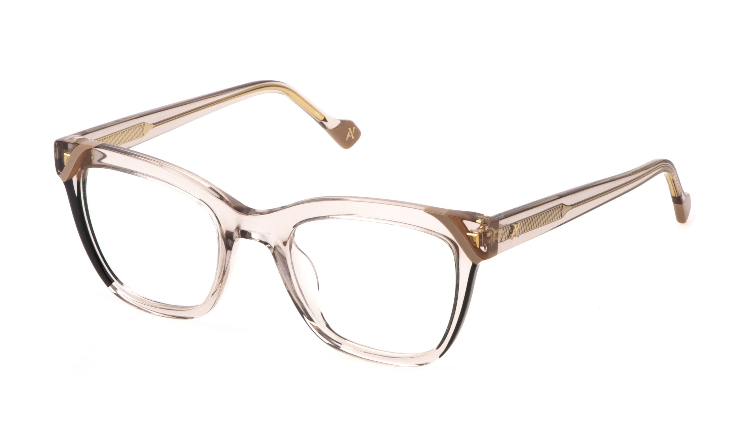 Optical style Emmy boasts a slightly square front with colored attachments. The acetate temples are characterized by the brand’s monogram. The 5AW variant is embellished with small triangular crystals.