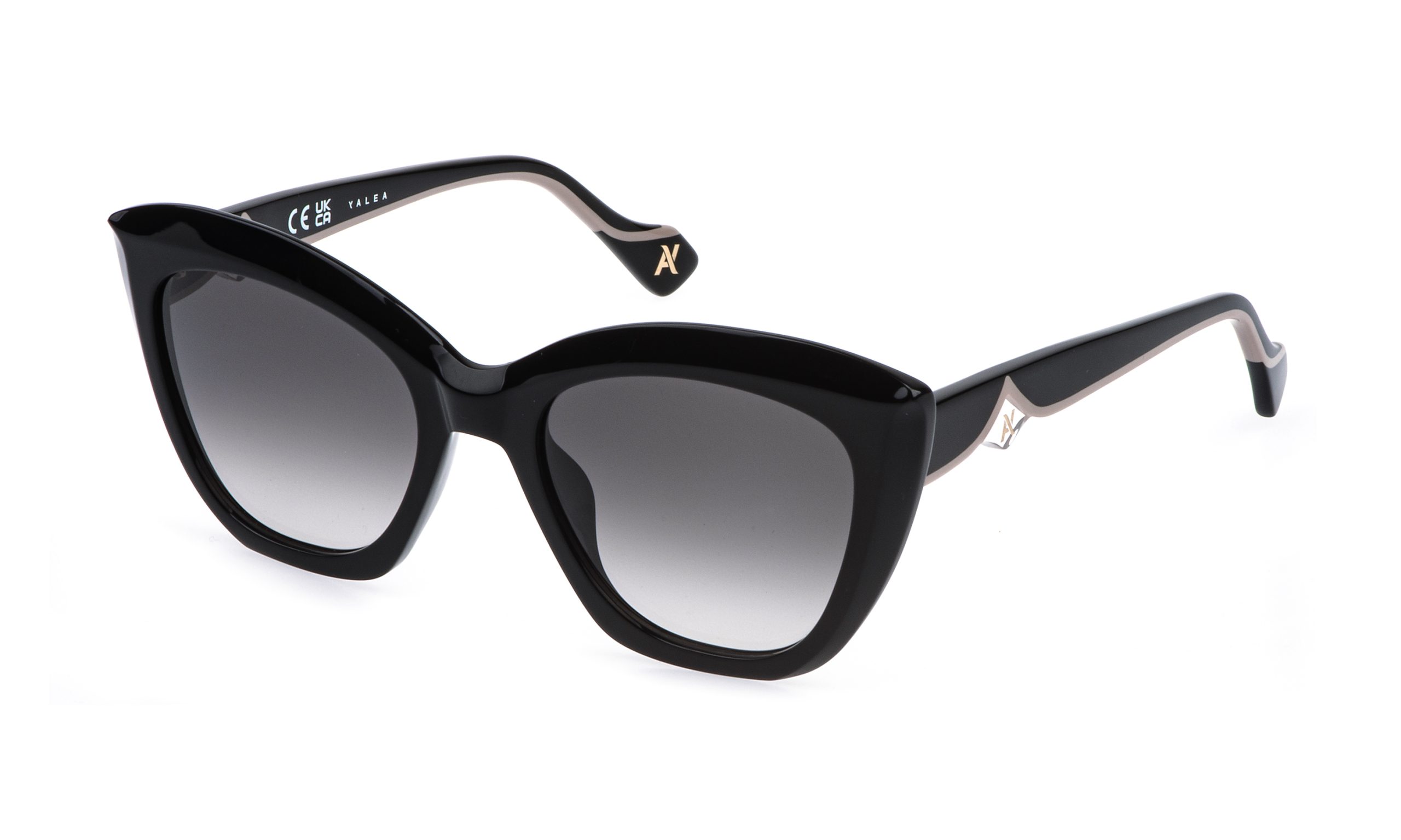 The Natalia sunglasses catch the eye with their butterfly-shaped acetate front, enriched with refined facets that play elegantly and sophisticatedly with the light. The temples, sinuous and inspired by the soft lines of the AY monogram, are adorned with delicate overlays that enhance their lightness and grace. The AY monogram, framed by a transparent diamond-shaped setting, adds a touch of refinement that makes this model unique and unforgettable.