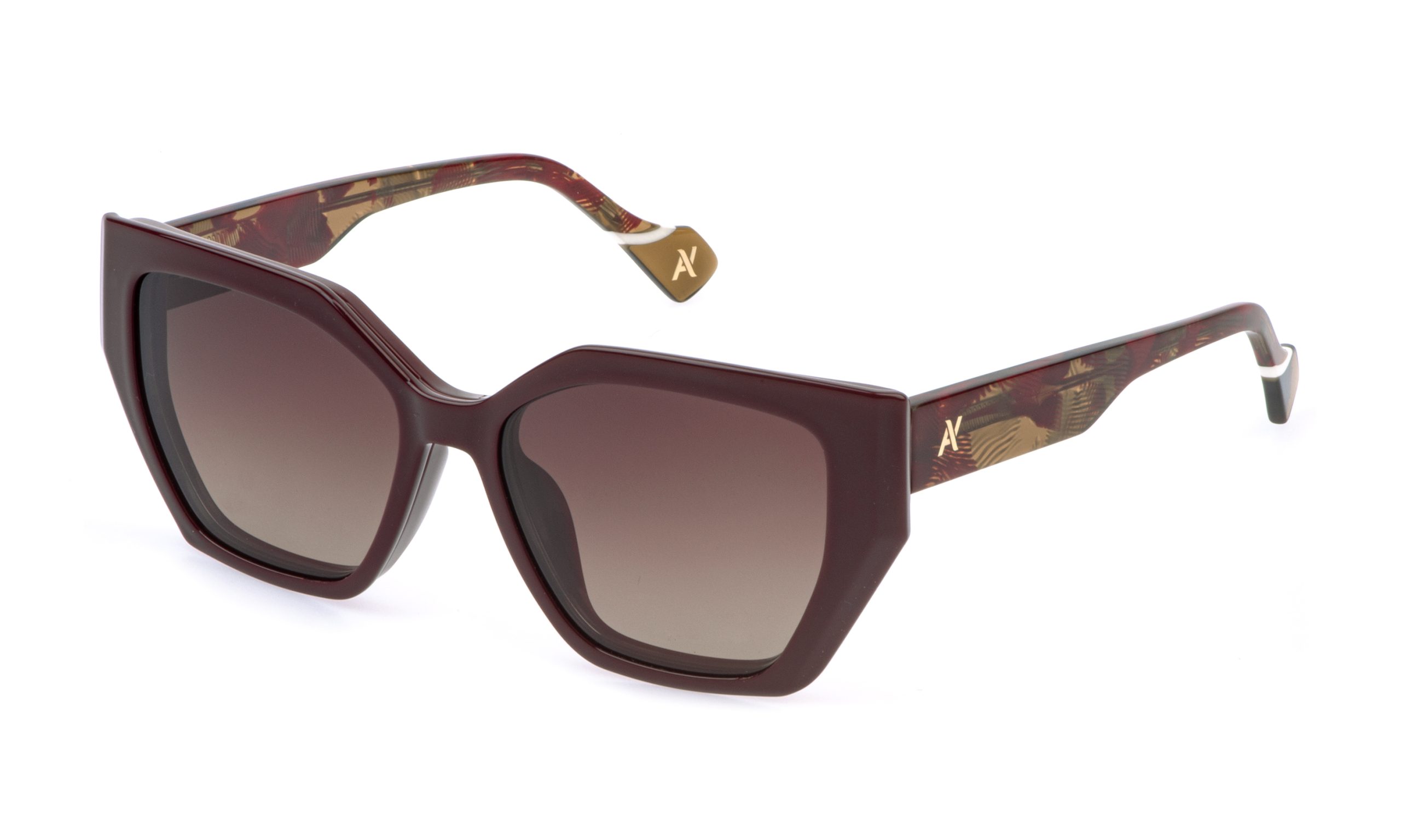 Novella is an eyeglass model that transforms into sunglasses with a simple clip-on. The magnetic clip-on features polarized lenses and matches the frame’s color. Entirely acetate, the frame has facets on the sides, and the temples display the Yalea monogram.