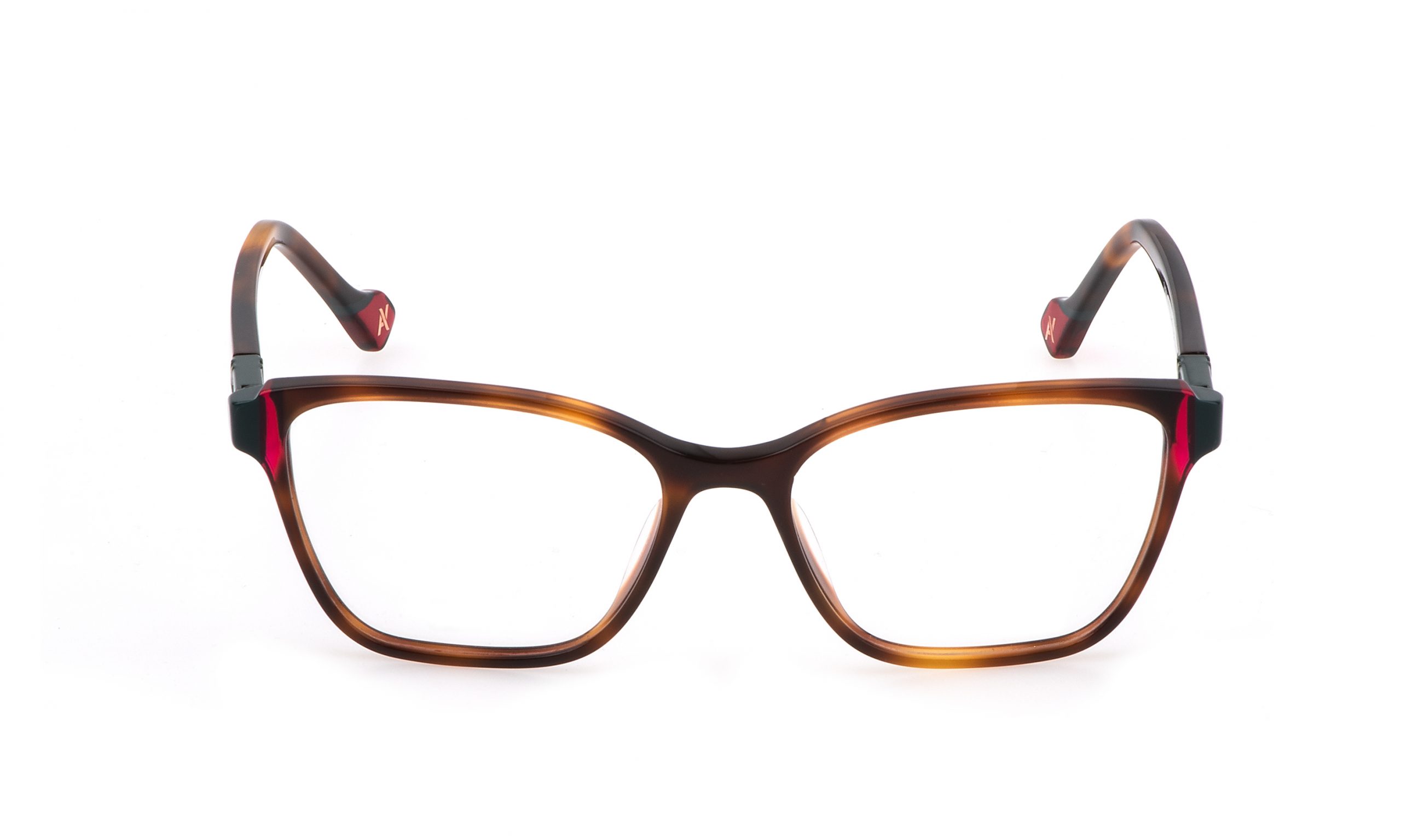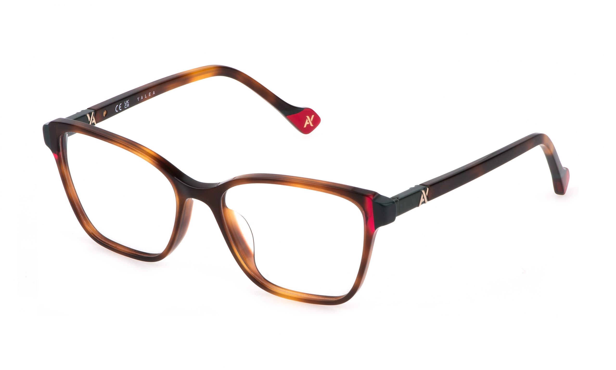The Shirin prescription glasses feature a square-shaped front piece in acetate. The style stands out for its colourful bonded acetate inserts on the temples and rims. A further eye-catching detail is the Yalea monogram featured on the temples.