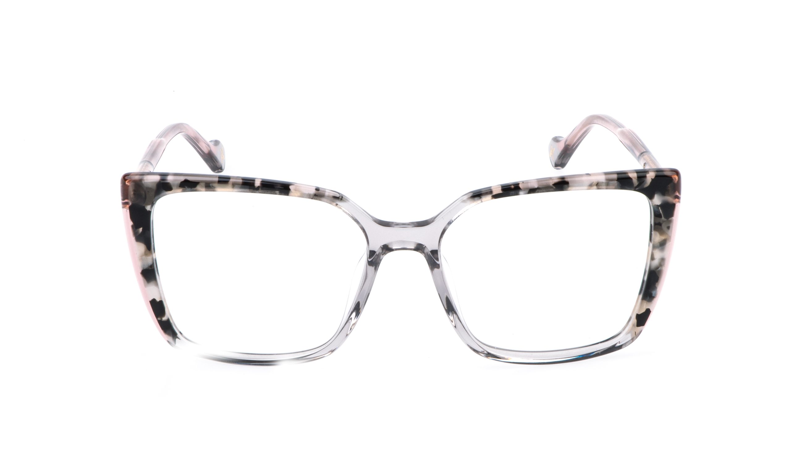 The Simone eyeglass has an acetate front made using lamination. The temple has a tubular shape, is made of acetate, and features a metal detail. The V versions are enriched with an acetate inlay placed on the lateral part of the front.