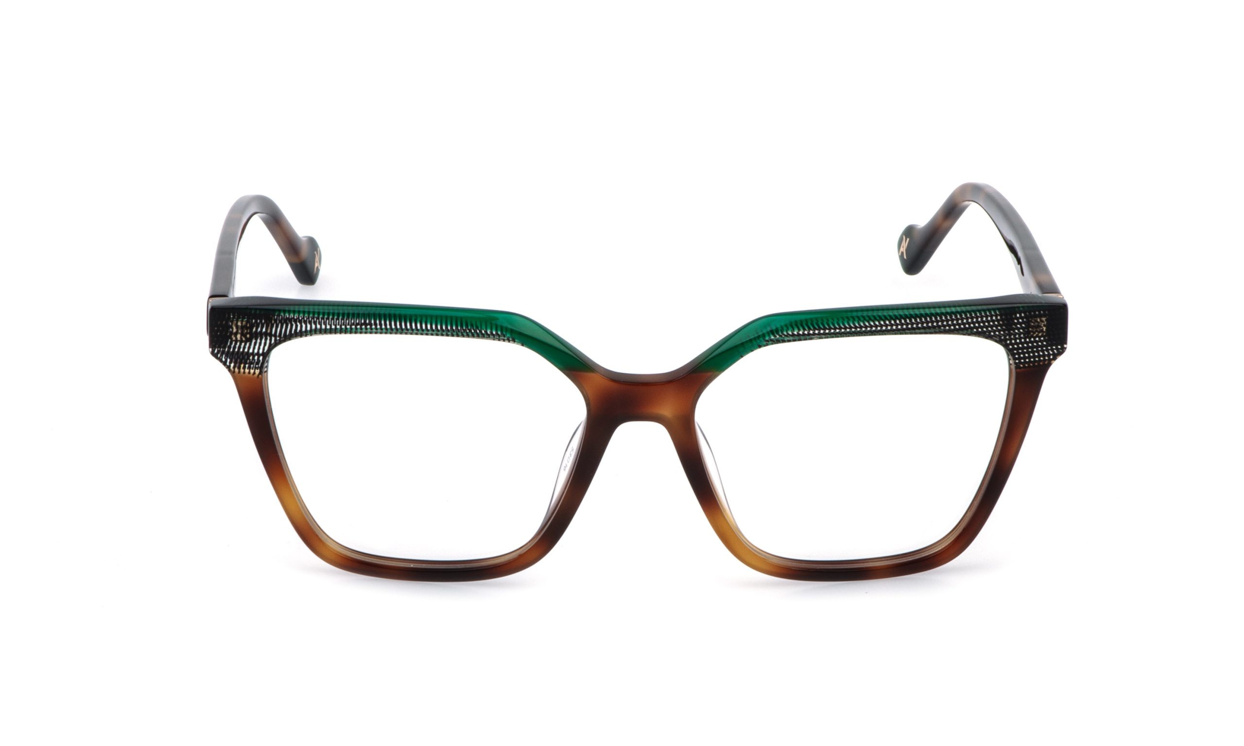 The Taj optical glasses feature a squared acetate front that captures attention with bold, contemporary lines. The acetate temples are adorned with the AY monogram, a subtle touch that gives the glasses strong personality. The “V” versions stand out for refined overlays on the front, a detail that speaks of craftsmanship and timeless style.