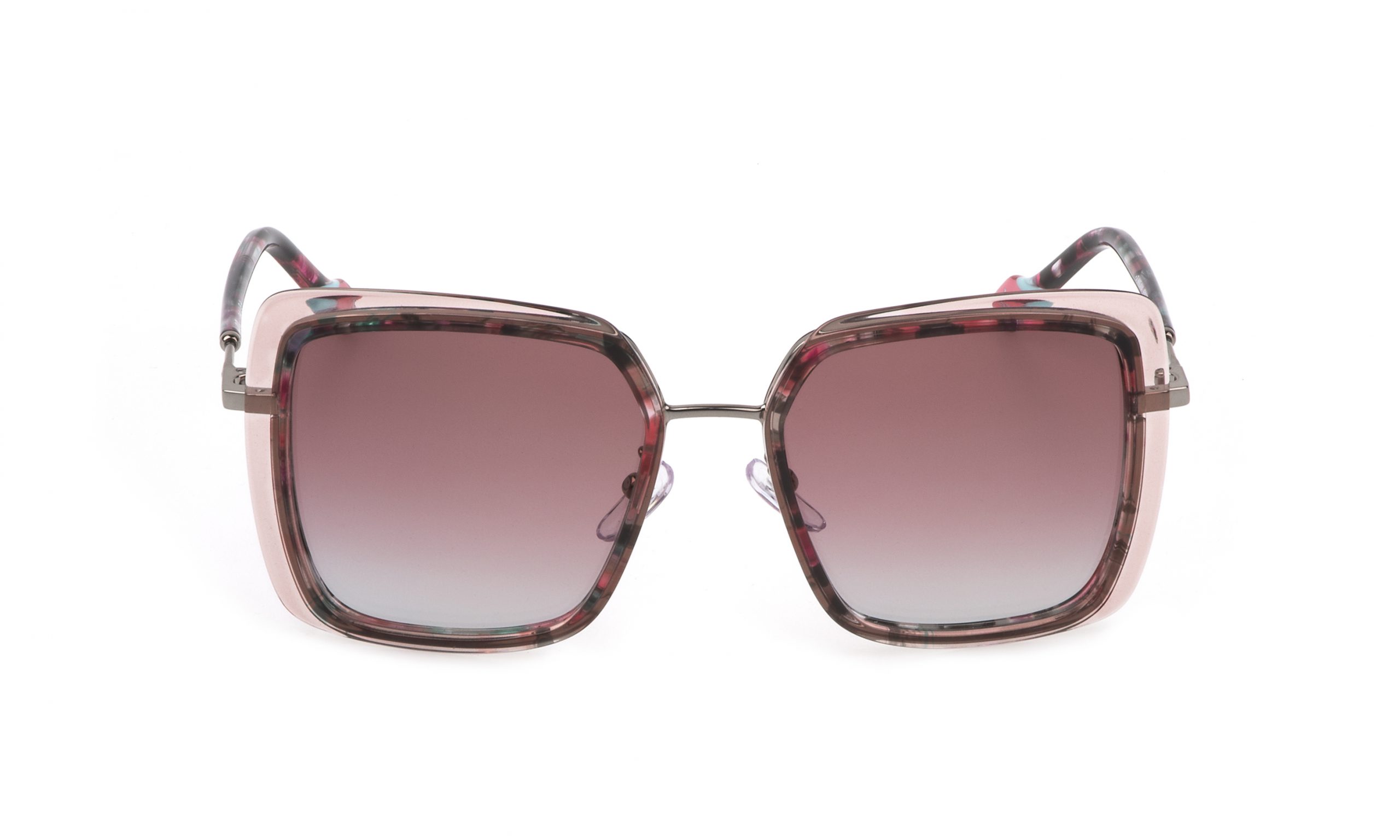 The Wislawa sunglasses features a large, square-shaped front piece in acetate and metal. The style stands out particularly for its front piece, featuring a double layer of see-through acetate. The elegantly designed temples are embellished with the Yalea monogram.